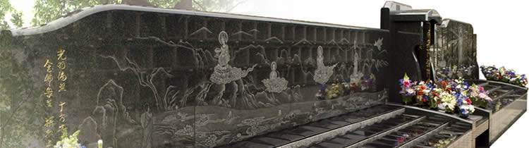 50年、100年と、大きなくくりの年忌を遠忌(おんき)と呼びますが、百年遠忌墓無量寿は、屏風絵の山越阿弥陀様のみもと、ご遺骨を遠忌にわたるまで納め、ご供養いたします。